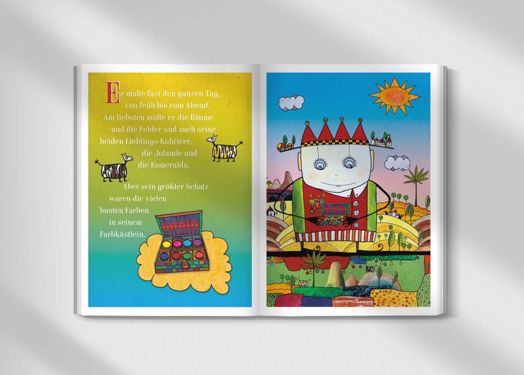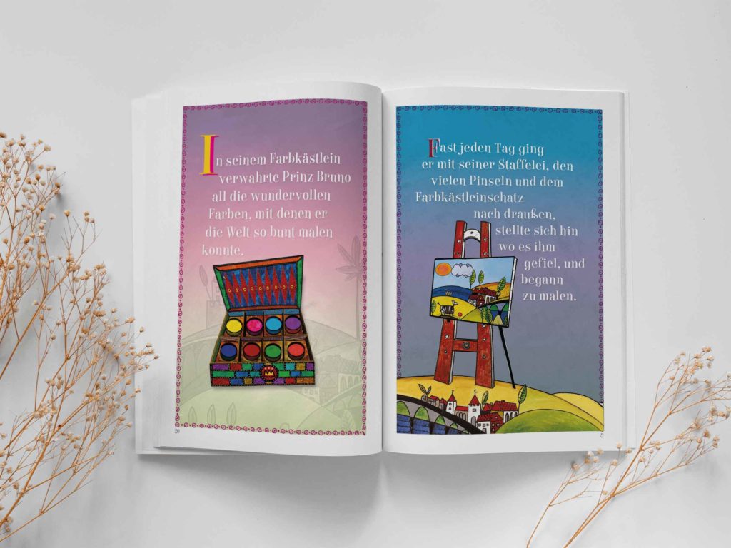 Wenn du das Buch von Prinz Bruno del Gado mit der spannenden Geschichte über die verlorenen Farben gern haben möchtest, finde ich das sehr toll.