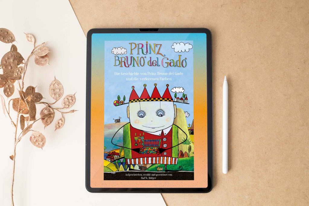 In seinem ersten Buch erzählt Prinz Bruno die spannende Geschichte von der Suche nach den verlorenen Farben. Aber wieso sind denn die Farben von Prinz Bruno verloren gegangen? Was ist denn da noch alles passiert? Wenn du wissen willst wie dieses Abenteuer ausgeht und ob der kleine Prinz Bruno del Gado wieder gut schlafen kann, dann schau doch einfach mal rein und bestell einfach das Buch.